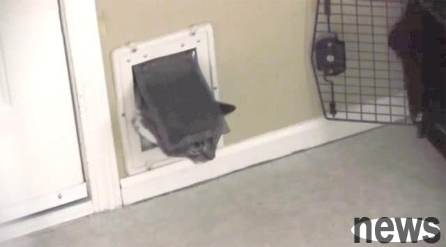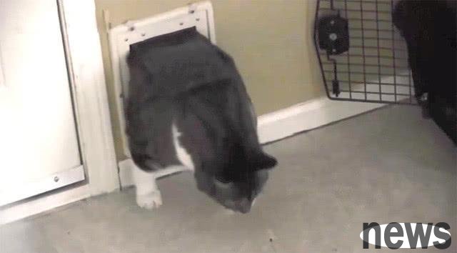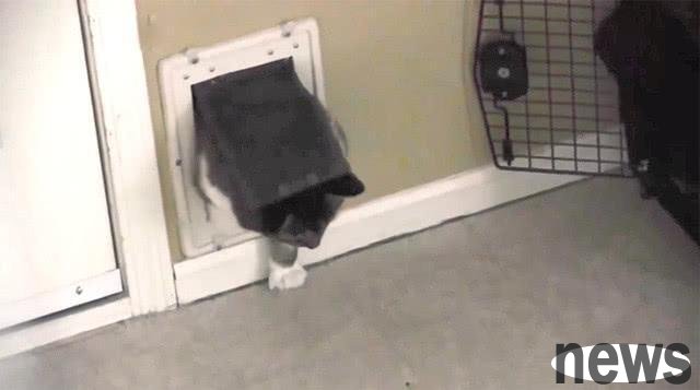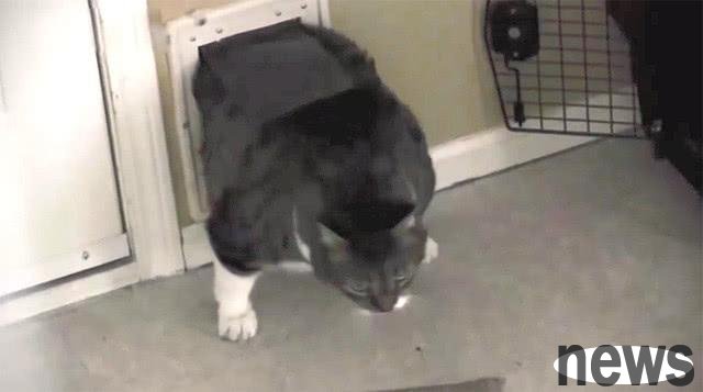 Oh yeah! The cat is in! At this time, we finally see the whole cat... No wonder it's stuck! The size of this cat is not proportional to the size of the door, okay? ! What on earth did the shit shovel officer think? !