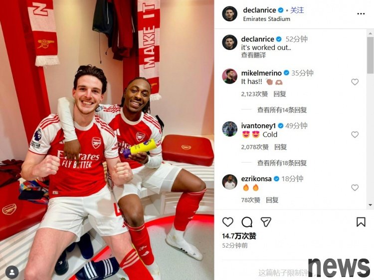 In the North London Derby in the 12th round of the Premier League, Arsenal defeated Tottenham with a score of 4-1. After the game, Gunners midfielder Rice celebrated this important victory on social media. On social media, Rice posted a photo with h...