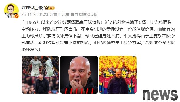 In the 12th round of the Premier League, Liverpool lost 0-3 to Forest at home. Zhan Jun posted a comment on the game. Zhan Jun: For the first time since 1965, two consecutive league games were defeated by three goals! Liverpool has lost 6 of the pas...